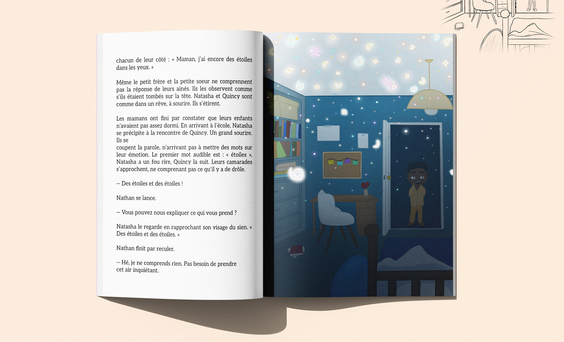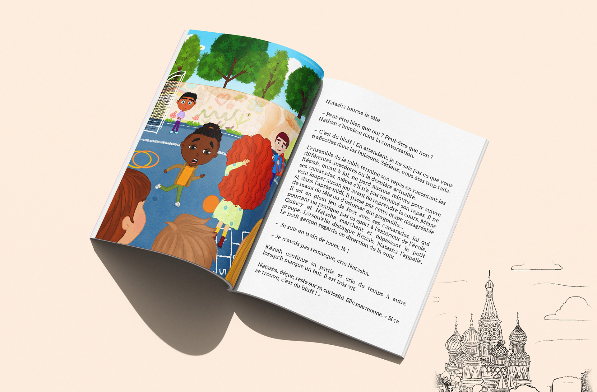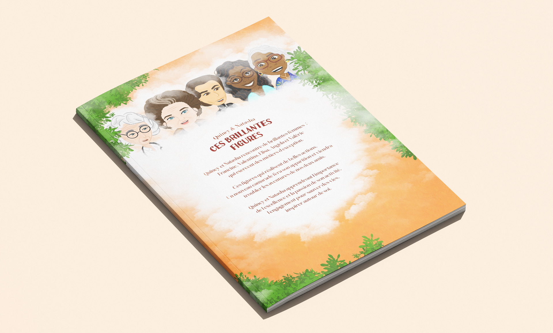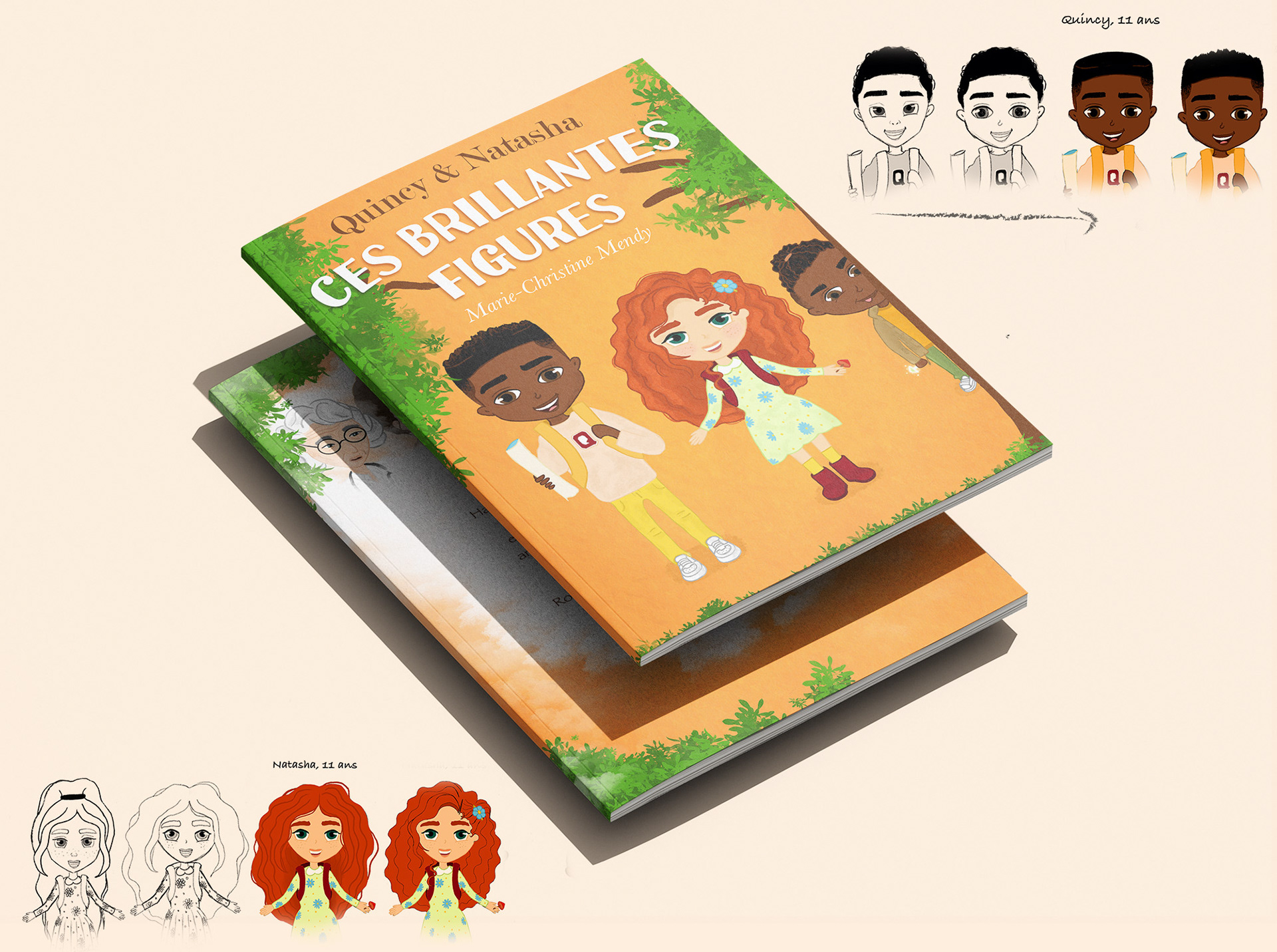J'ai eu le plaisir d'illustrer le tome 2 du livre Quincy et Natasha, une histoire jeunesse qui mêlent aventures et engagements. Nos deux personnages vont à la rencontre de 5 femmes aux parcours inspirants. À travers leurs voyages, ils découvrent des métiers d’exception et apprennent des valeurs fortes comme le respect, le courage et la solidarité. Mon travail a consisté à donner vie à cet univers. Chaque scène a été soigneusement pensée pour accompagner fidèlement les écrits de l'autrice et permettre aux lecteurs de se plonger pleinement dans le récit.